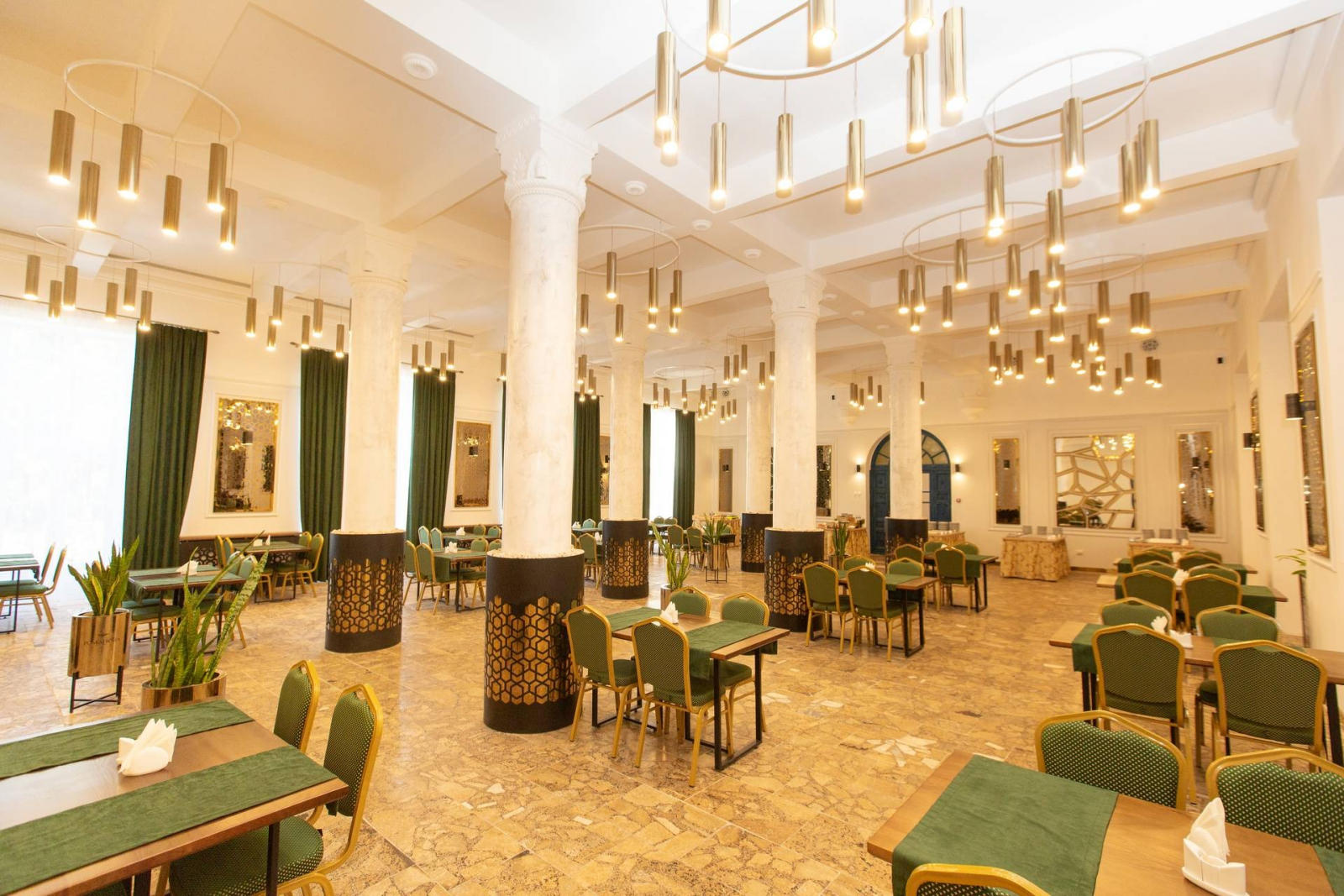 Горячие и холодные блюда из рыбы и мяса, гарниры, салаты, супы — все это в большой разнообразии представлено для гостей парк-отеля.